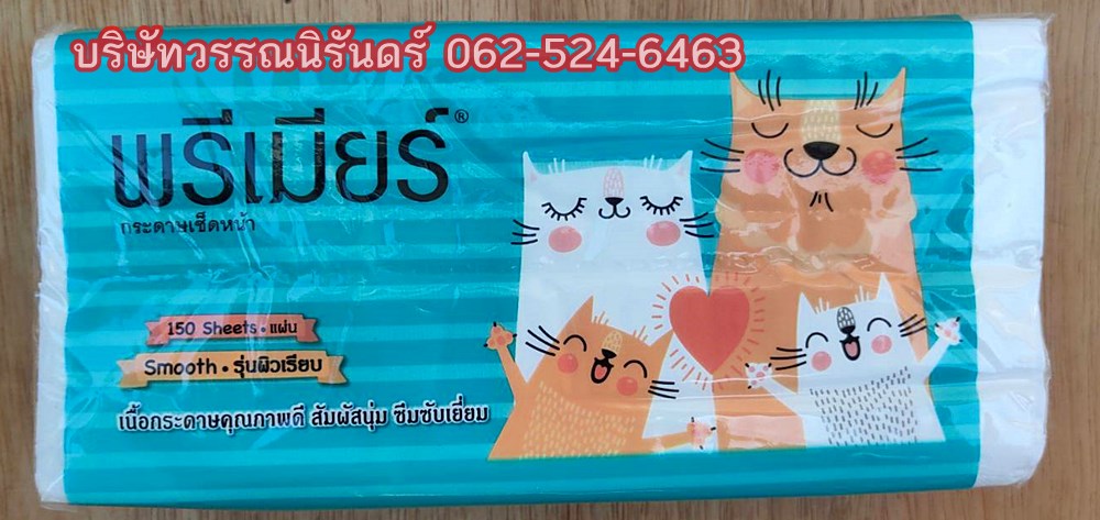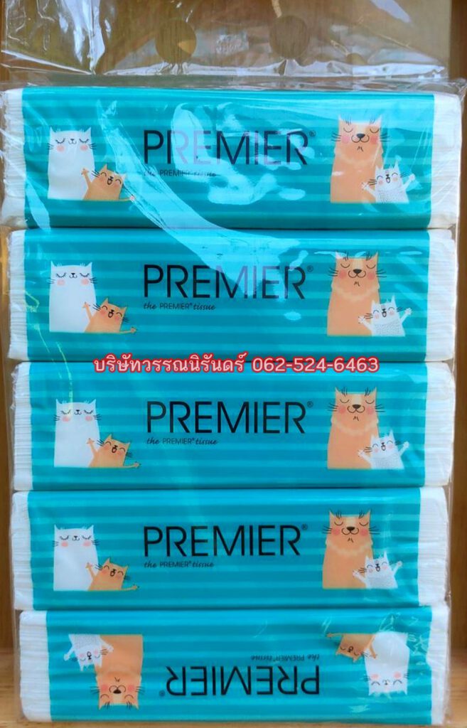 กระดาษทิชชู่พรีเมียร์ The Premier Tissue รุ่น 150แผ่นคู่ แบบผิวเรียบ แบบมีถุงหิ้ว