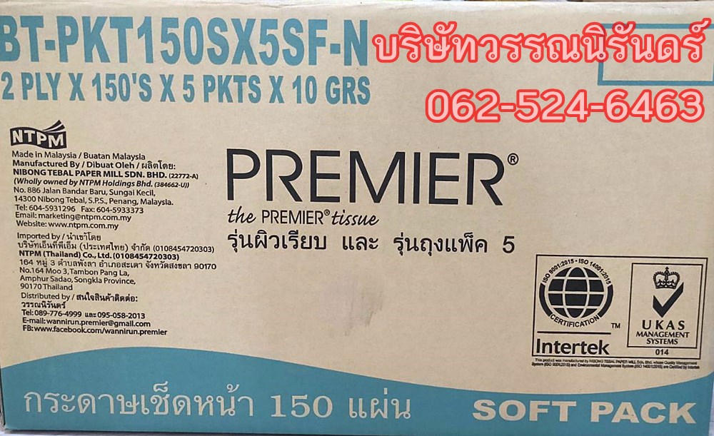 สนใจ ติดต่อสั่งซื้อทิชชู่พรีเมียร์ไปขายต่อ ในจำนวนขั้นต่ำ(110 ลังขึ้นไป) ติดต่อได้ที่ 062-524-6463